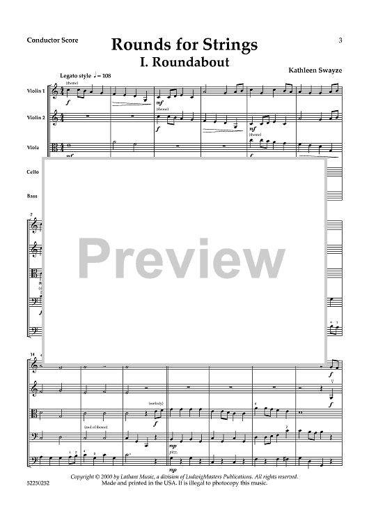 "Rounds for Strings - Score" Sheet Music by Kathleen Swayze