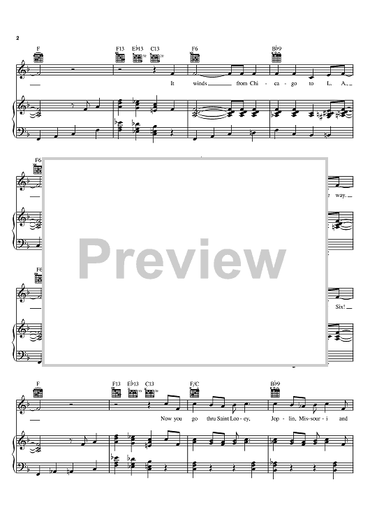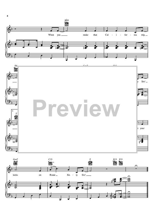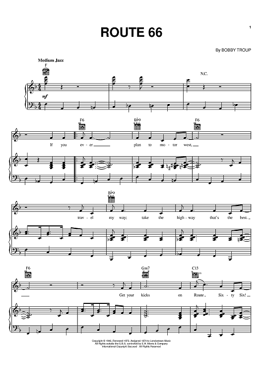 Digital Sheet Music for Route 66 by Nat King Cole, The Manhattan Transfer, Bobby Troup scored for Piano/Vocal/Chords; id:384952