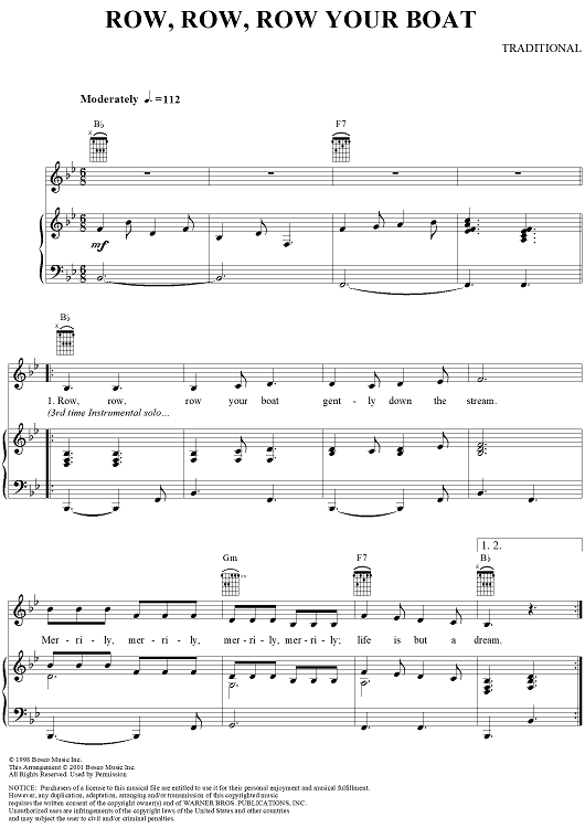 Digital Sheet Music for Row, Row, Row Your Boat by Traditional scored for Piano/Vocal/Chords; id:289178
