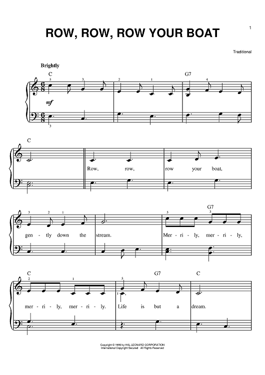 Digital Sheet Music for Row, Row, Row Your Boat by scored for Easy Piano; id:386915