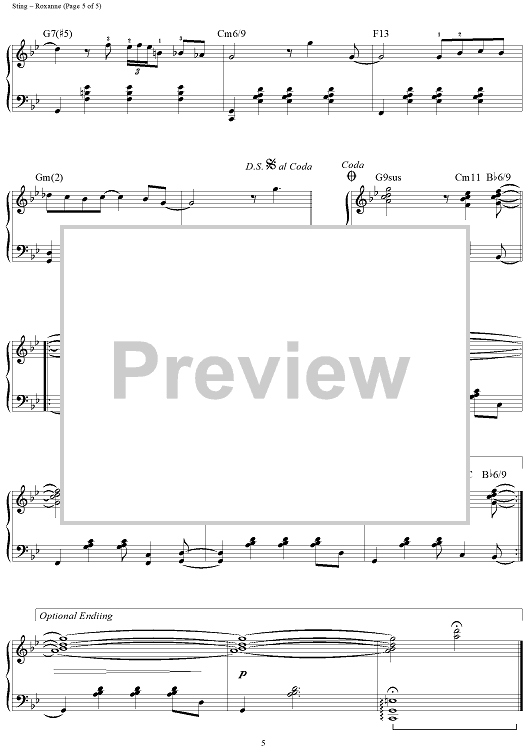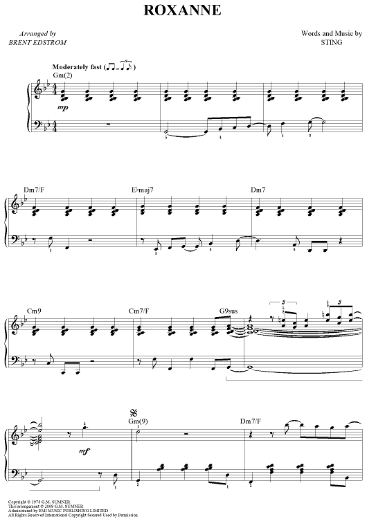Digital Sheet Music for Roxanne by Sting, Brent Edstrom scored for Piano Solo; id:462793
