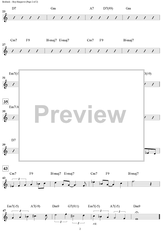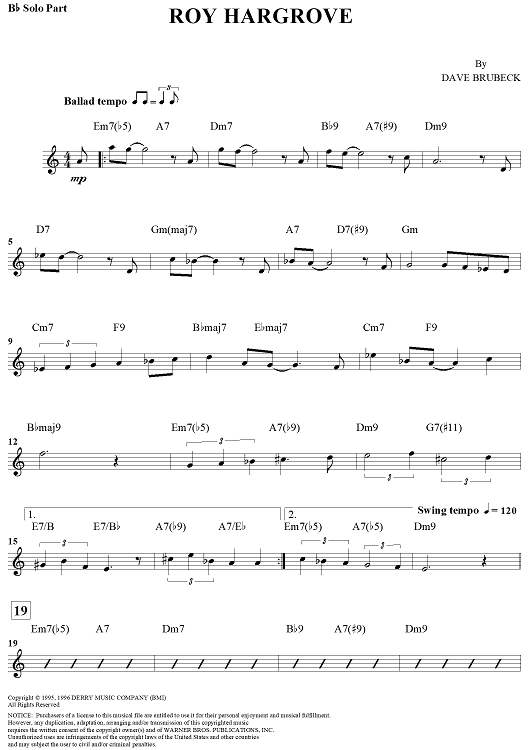 Digital Sheet Music for Roy Hargrove - B-flat Instrument by , Dave Brubeck scored for B-flat Instrument/Piano; id:275572