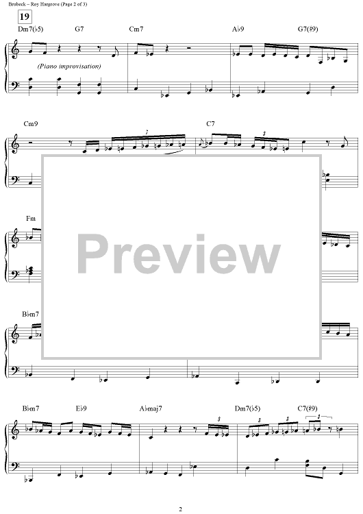 Digital Sheet Music for Roy Hargrove - Piano by Dave Brubeck scored for B-flat Instrument/Piano; id:275575