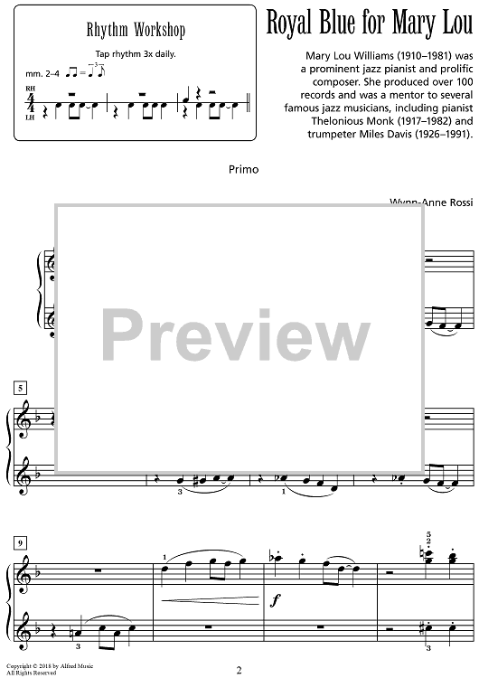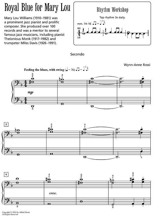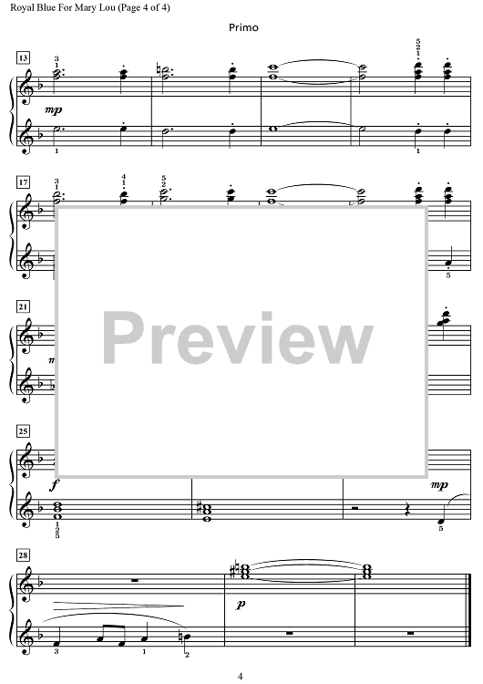 Digital Sheet Music for Royal Blue for Mary Lou by Wynn-Anne Rossi scored for 1 Piano, 4 Hands; id:469641