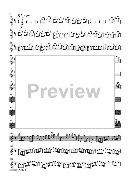 "Royal Fireworks Music - Violin 1" Sheet Music by George Frideric Handel