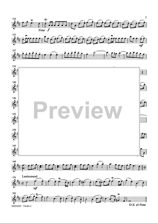 Digital Sheet Music for Royal Fireworks Music - Violin 1 by George Frideric Handel, Lynne Latham scored for String Orchestra; id:458597