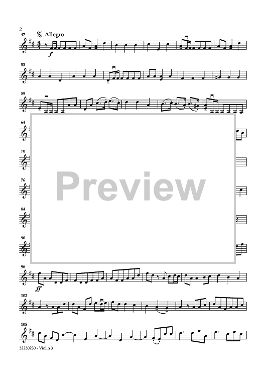 Digital Sheet Music for Royal Fireworks Music - Violin 3 (for Viola) by George Frideric Handel, Lynne Latham scored for String Orchestra; id:458599