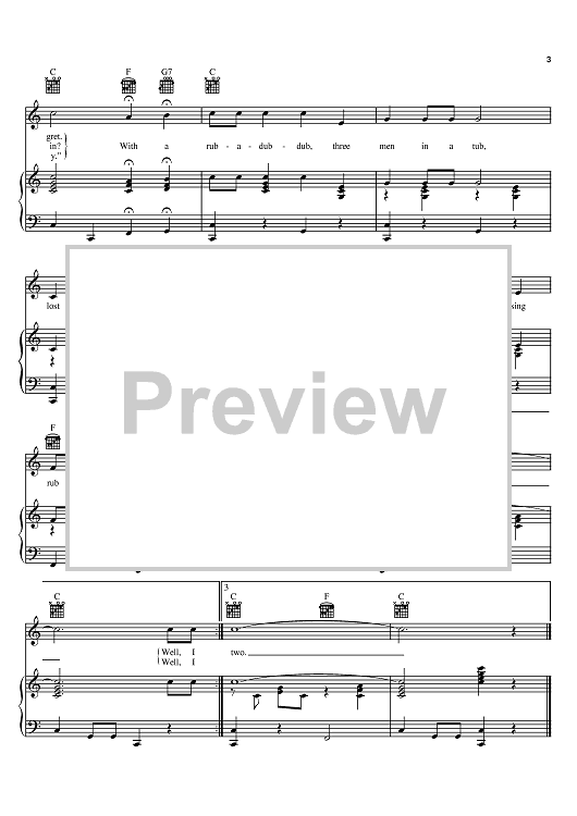 Digital Sheet Music for Rub-a-dub-dub by Hank Thompson scored for Piano/Vocal/Chords; id:388216