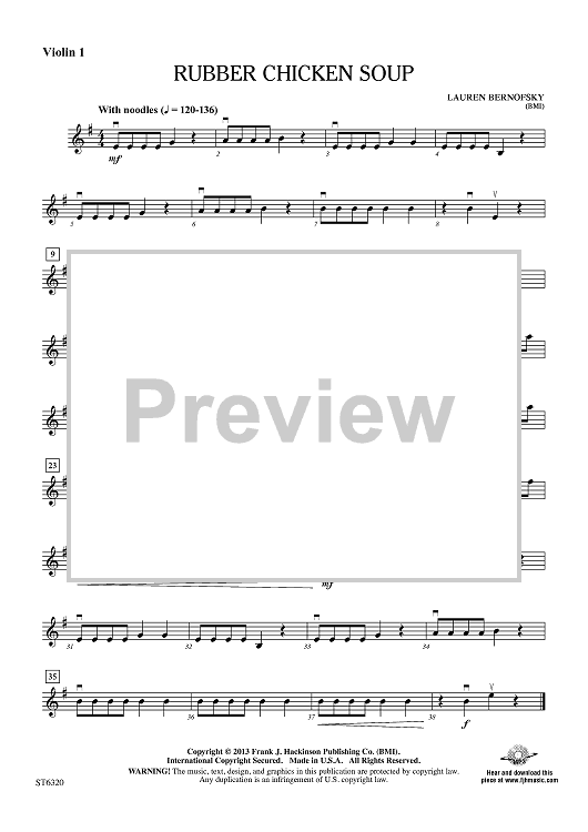"Rubber Chicken Soup - Violin 1" Sheet Music by Lauren Bernofsky