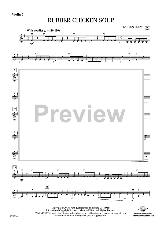 "Rubber Chicken Soup - Violin 2" Sheet Music by Lauren Bernofsky