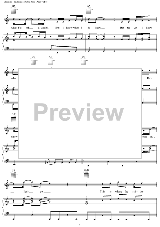Digital Sheet Music for Rubber Meets the Road by Steven Curtis Chapman scored for Piano/Vocal/Chords; id:272878