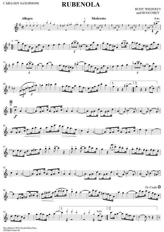 Digital Sheet Music for Rubenola - C Melody Saxophone by Hugo Frey, Rudy Wiedoeft scored for C Melody Sax/Piano; id:355247