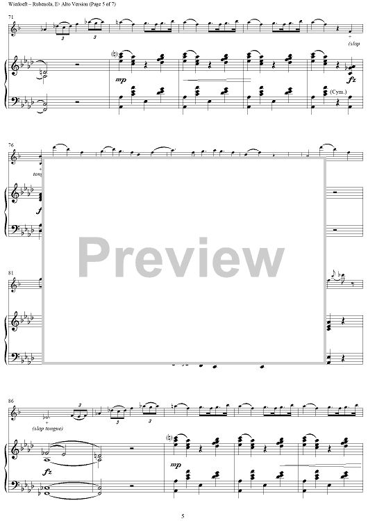 Digital Sheet Music for Rubenola - Piano Score (for Alto Sax) by Hugo Frey, Rudy Wiedoeft scored for Alto Sax/Piano; id:355250