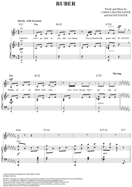Digital Sheet Music for Ruber by Carole Bayer Sager, Gary Oldman, David Foster scored for Piano/Vocal/Chords; id:256217