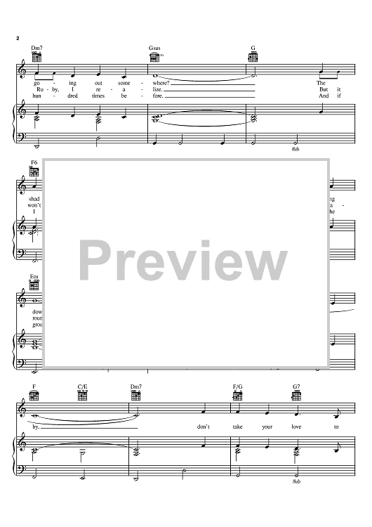 Digital Sheet Music for Ruby, Don't Take Your Love To Town by Kenny Rogers, Waylon Jennings, George Jones, Mel Tillis, Johnny Darrell scored for Piano/Vocal/Chords; id:381635
