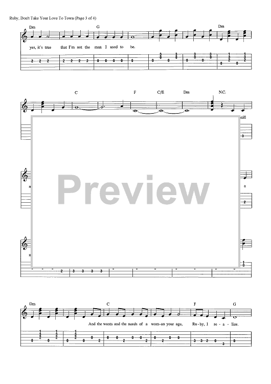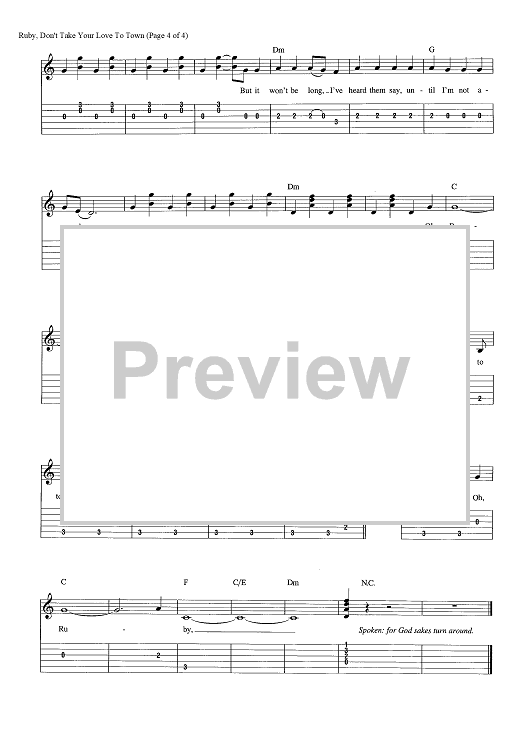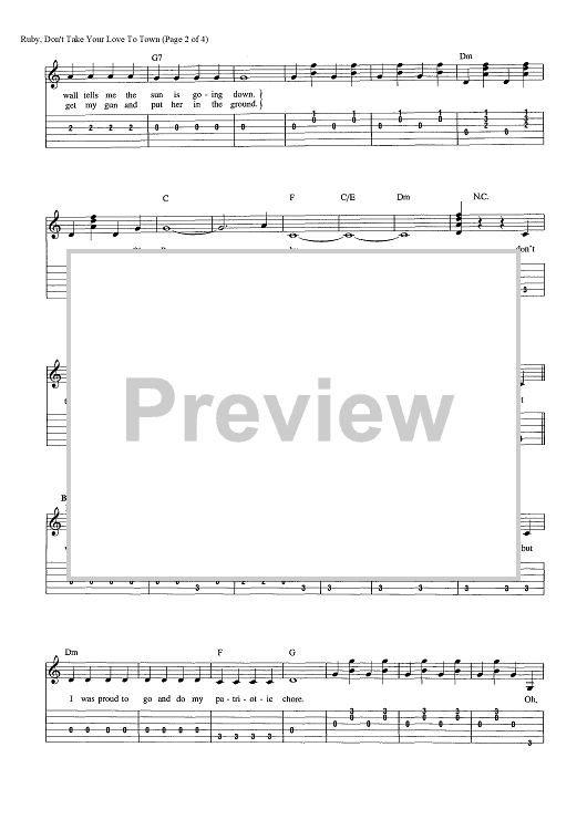 Digital Sheet Music for Ruby, Don't Take Your Love to Town by Mel Tillis, Johnny Darrell scored for Easy Guitar Tab/Vocal/Chords; id:456836