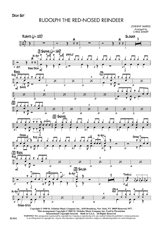 Digital Sheet Music for Rudolph the Red-Nosed Reindeer - Drum Set by Johnny Marks, Chris Sharp scored for Jazz Ensemble; id:455732