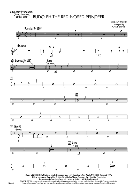 Digital Sheet Music for Rudolph the Red-Nosed Reindeer - Optional Auxiliary Percussion by Johnny Marks, Chris Sharp scored for Jazz Ensemble; id:455733