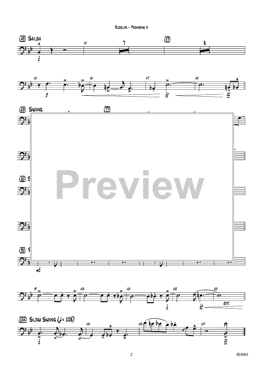 Digital Sheet Music for Rudolph the Red-Nosed Reindeer - Trombone 4 by Johnny Marks, Chris Sharp scored for Jazz Ensemble; id:455728