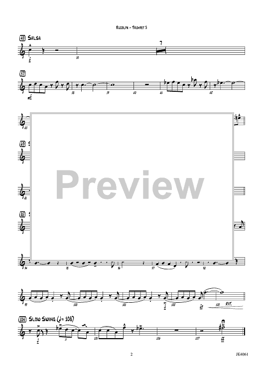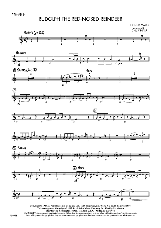 Digital Sheet Music for Rudolph the Red-Nosed Reindeer - Trumpet 3 by Johnny Marks, Chris Sharp scored for Jazz Ensemble; id:455723