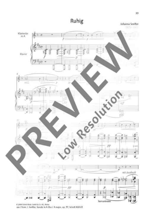 Digital Sheet Music for Ruhig by Johanna Senfter scored for Clarinet And Piano; id:495135
