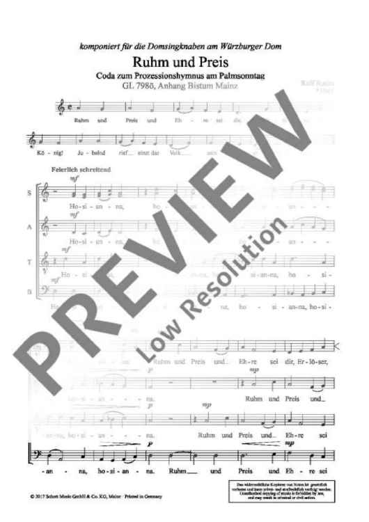 "Ruhm und Preis - Choral Score" Sheet Music by Rolf Rudin