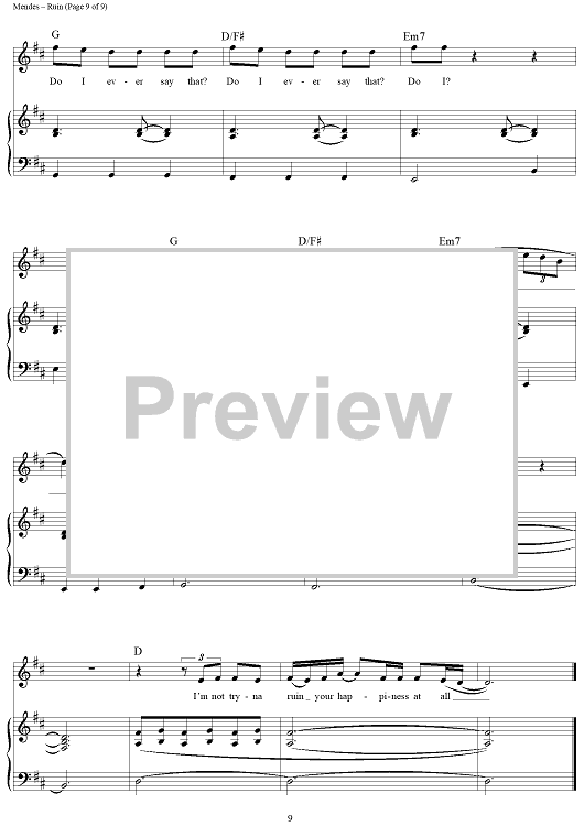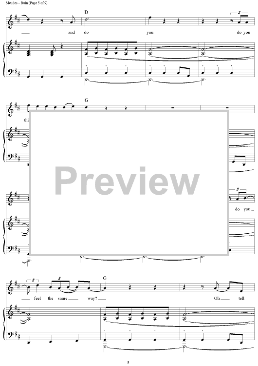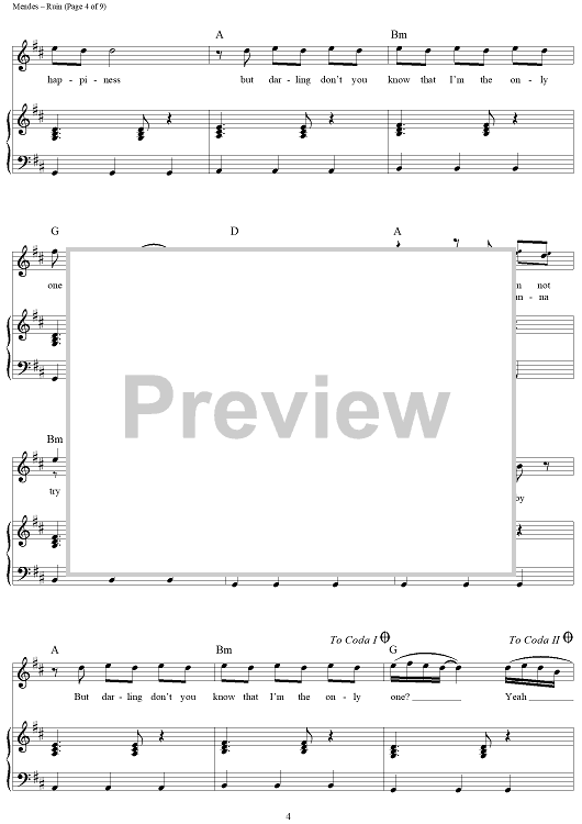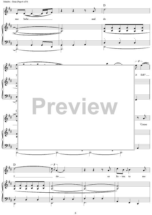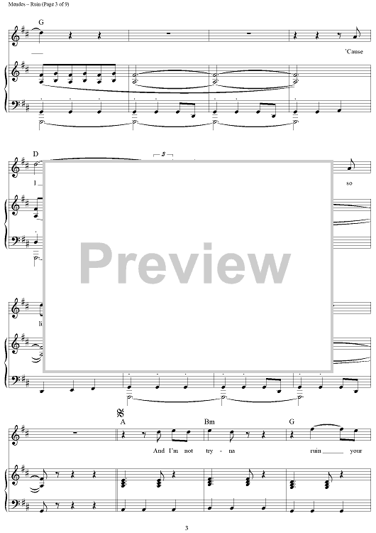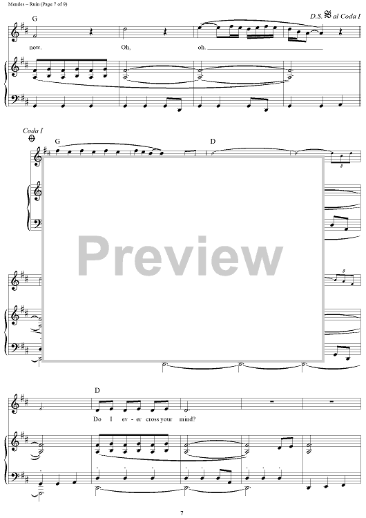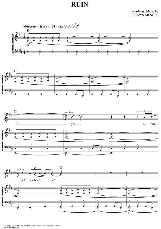Digital Sheet Music for Ruin by Shawn Mendes scored for Piano/Vocal/Chords; id:460409