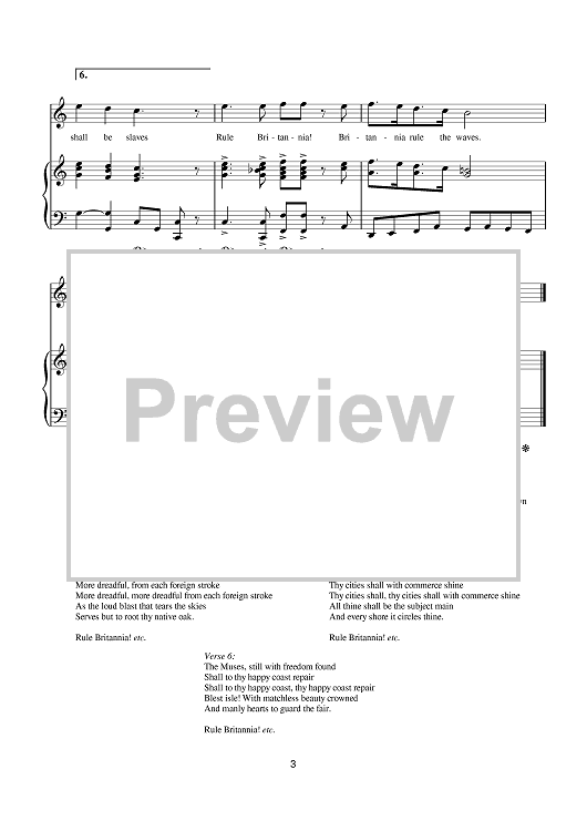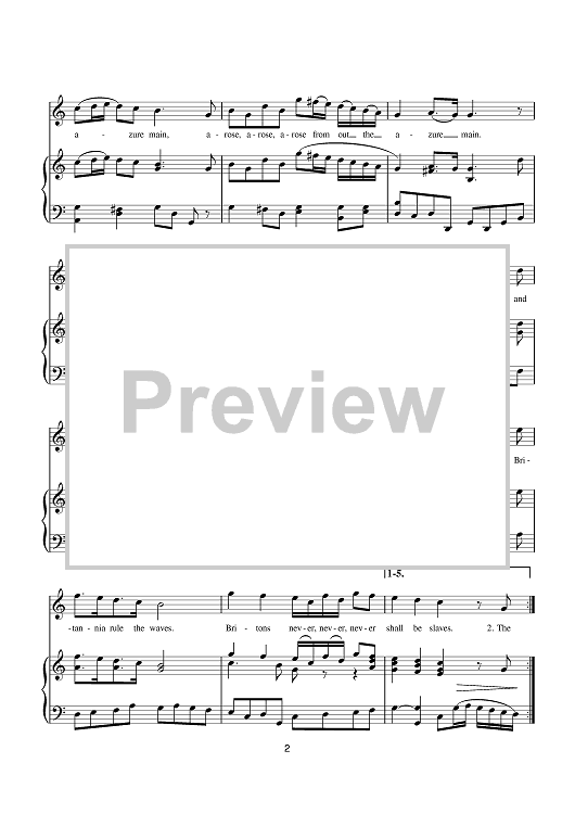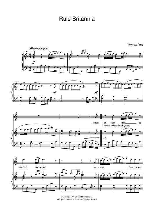 Digital Sheet Music for Rule Britannia by Thomas Arne scored for Piano/Vocal/Chords; id:397807