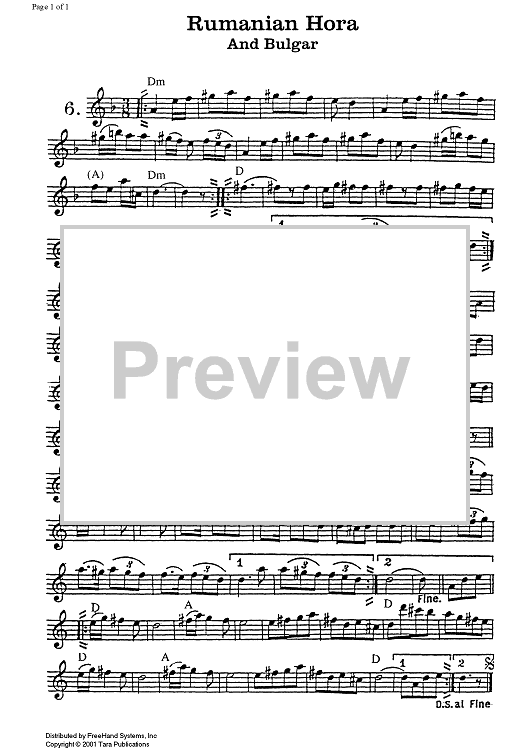"Rumanian Hora (And Bulgar) No. 6" Sheet Music by Traditional
