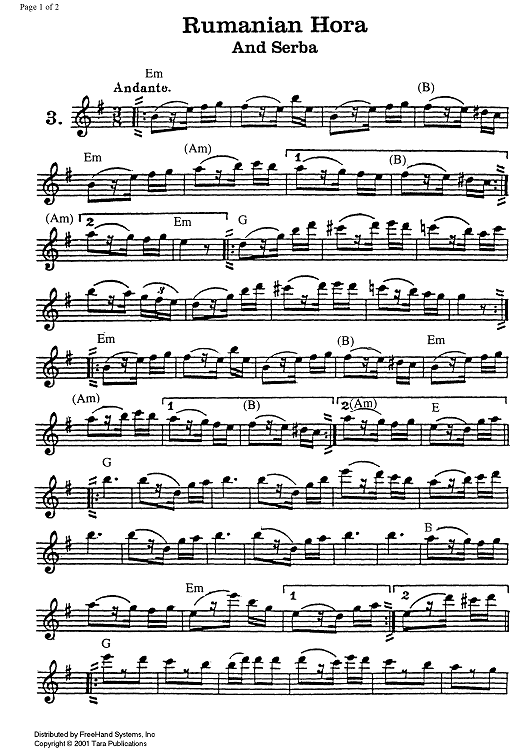 "Rumanian Hora (And Serba) No. 3" Sheet Music by Traditional