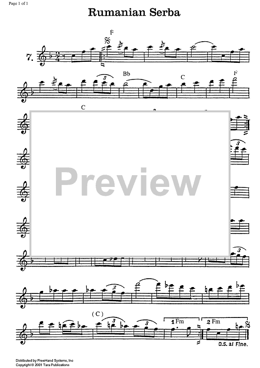 "Rumanian Serba No. 7" Sheet Music by Traditional