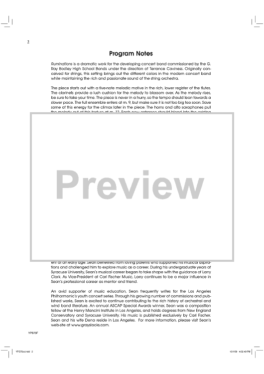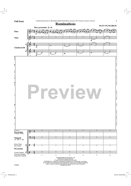Digital Sheet Music for Ruminations - Score by Sean O'Loughlin scored for Concert Band; id:409665