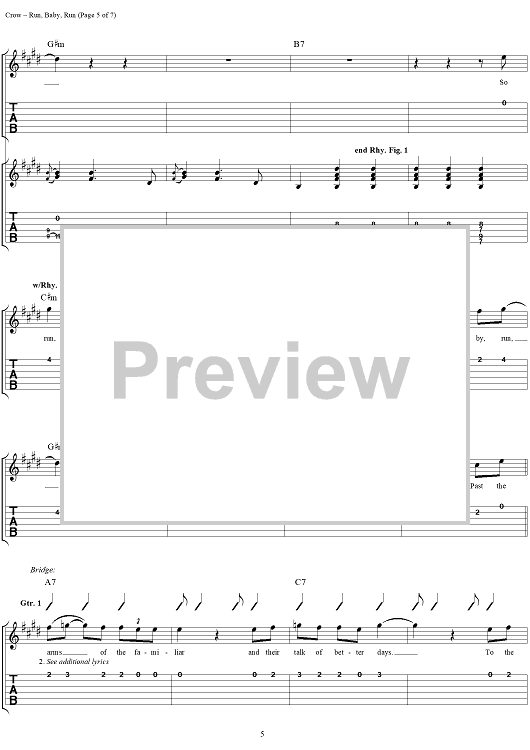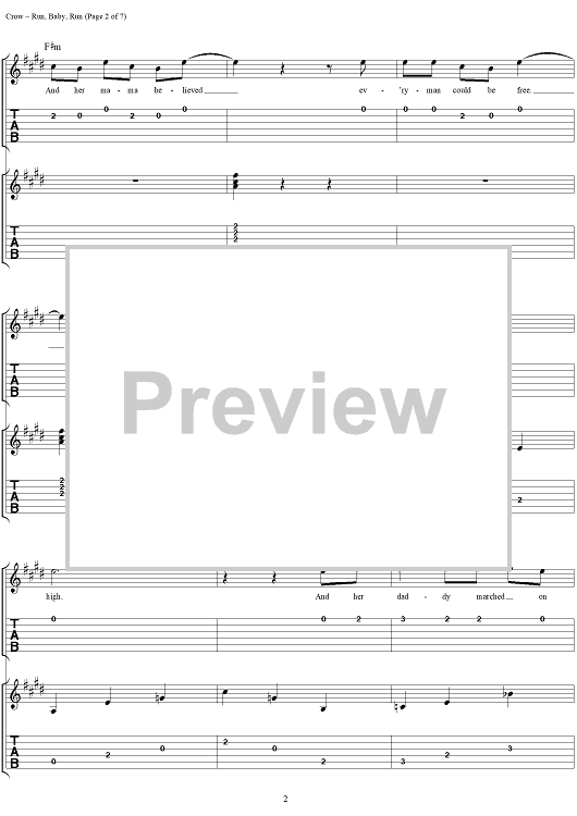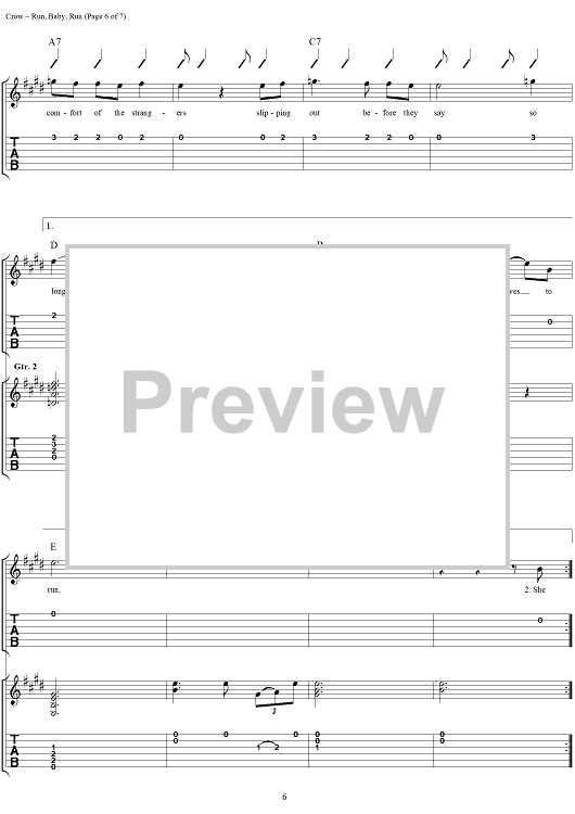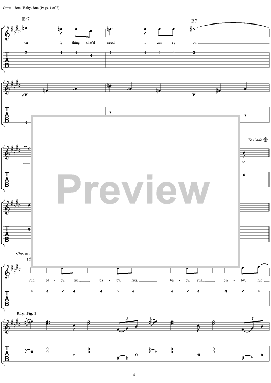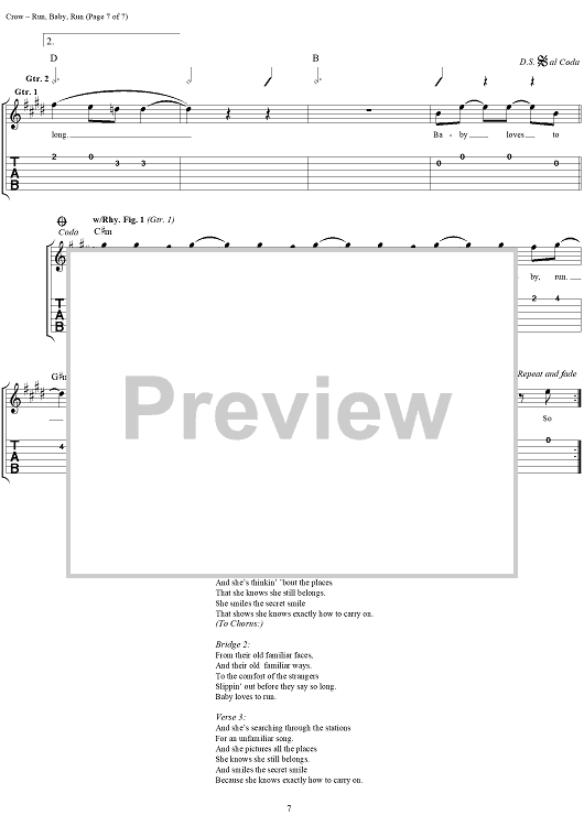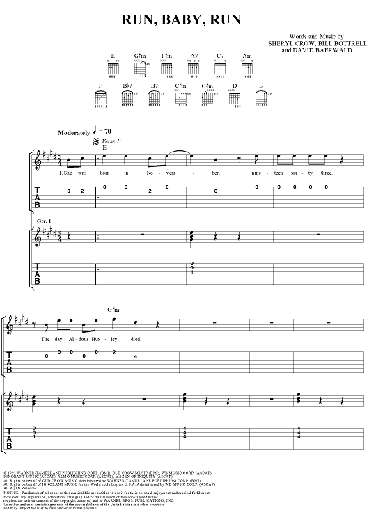Digital Sheet Music for Run, Baby, Run by Sheryl Crow, Bill Bottrell, David Baerwald scored for Easy Guitar Tab/Vocal; id:241644