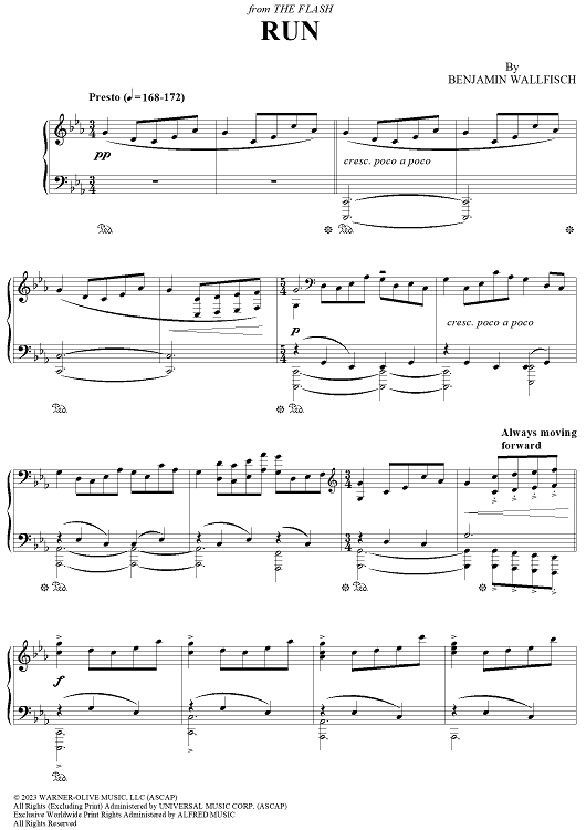 Digital Sheet Music for Run - from The Flash by Benjamin Wallfisch scored for Piano Solo; id:501068