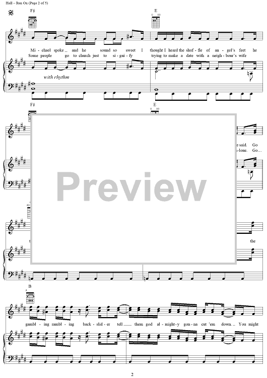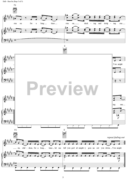 Digital Sheet Music for Run On by Moby, Richard Hall scored for Piano/Vocal/Chords/Drums; id:284189
