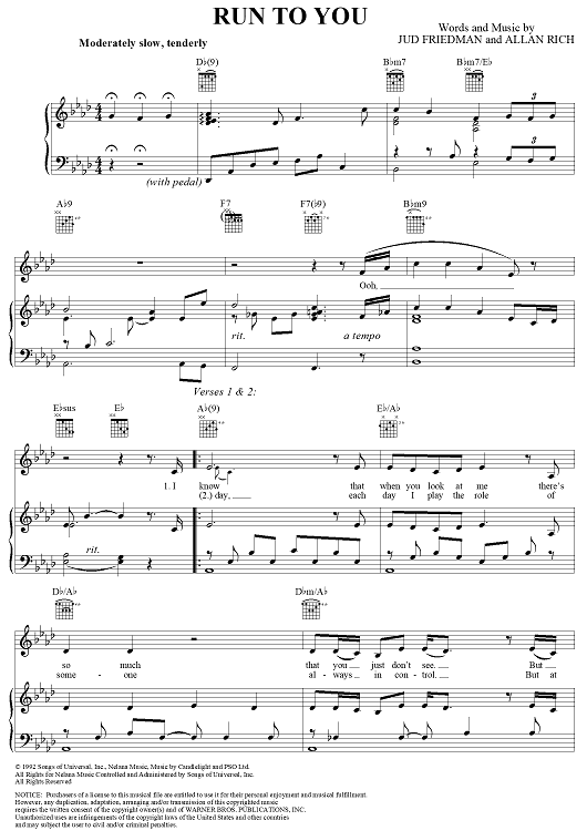 Digital Sheet Music for Run to You by Allan Rich, Jud Friedman, Whitney Houston scored for Piano/Vocal/Chords; id:289835