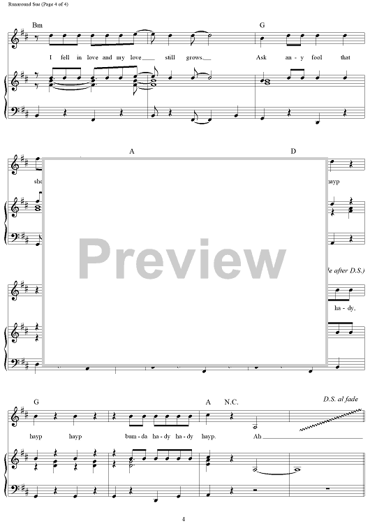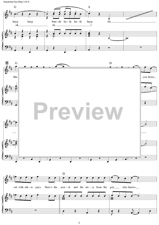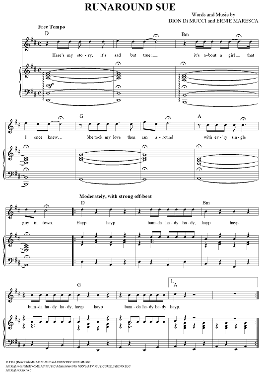Digital Sheet Music for Runaround Sue by Dion Di Mucci, Ernie Maresca, Dion scored for Piano/Vocal/Chords; id:112280