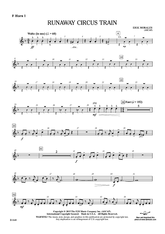 Digital Sheet Music for Runaway Circus Train - F Horn 1 by Erik Morales scored for Concert Band; id:455356