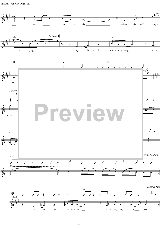 "Runaway" Sheet Music by Del Shannon