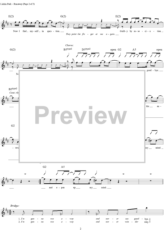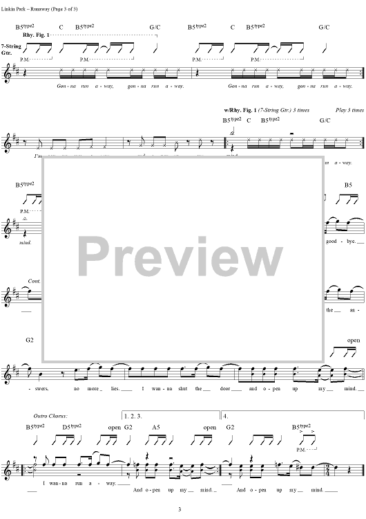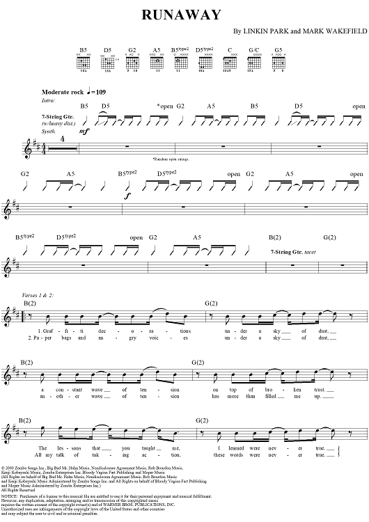 Digital Sheet Music for Runaway by Linkin Park, Mark Wakefield scored for Guitar Tab/Vocal; id:285781