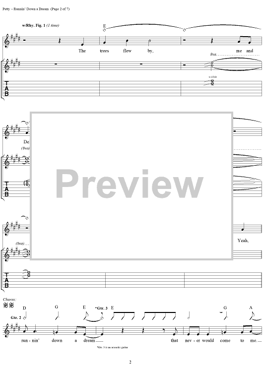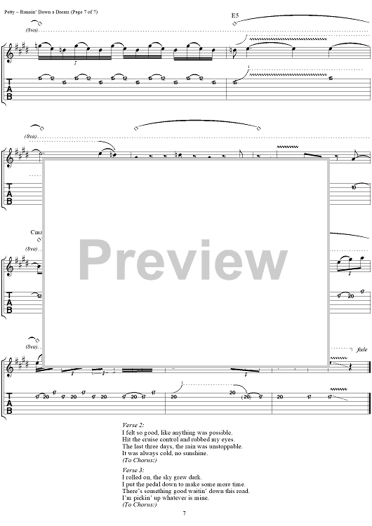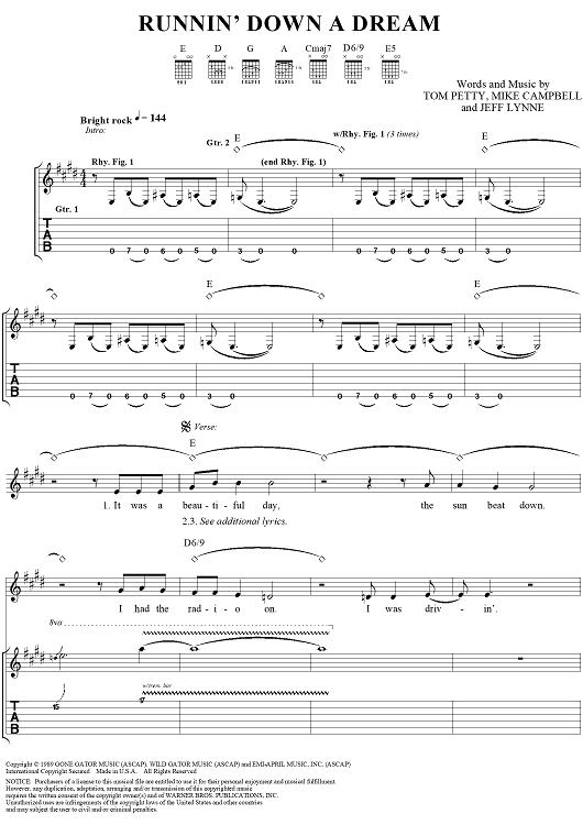 Digital Sheet Music for Runnin' Down a Dream by Tom Petty, Mike Campbell, Jeff Lynne scored for Guitar Tab/Vocal; id:113417