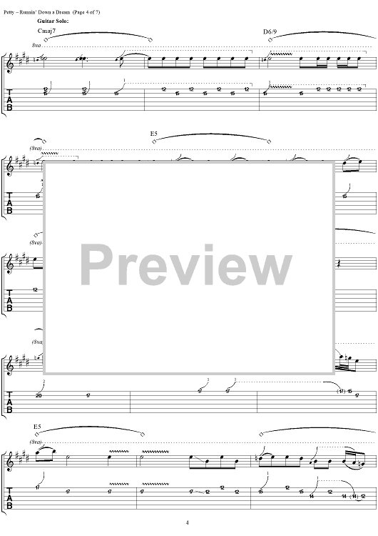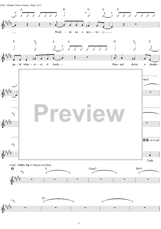 "Runnin' Down a Dream" Sheet Music by Tom Petty