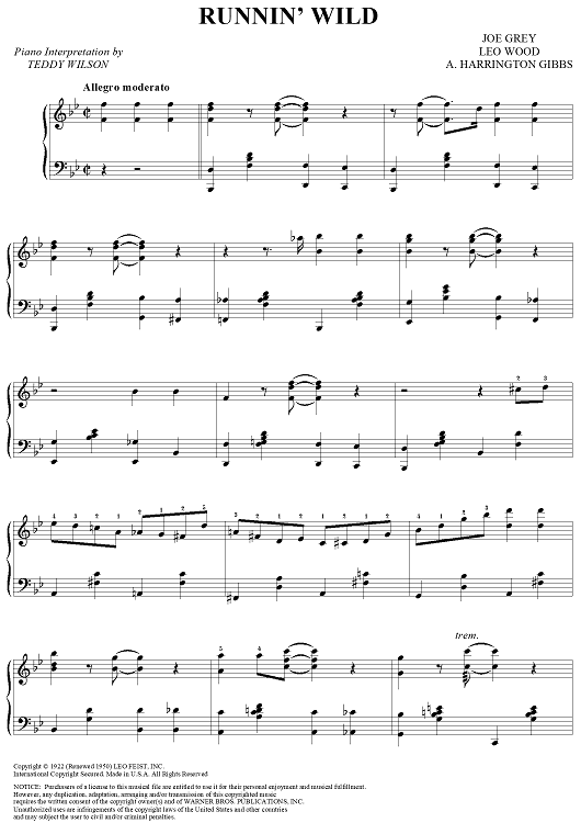 Digital Sheet Music for Runnin' Wild by Teddy Wilson, Leo Wood, A. Harrington Gibbs, Joe Grey scored for Piano Solo; id:315920
