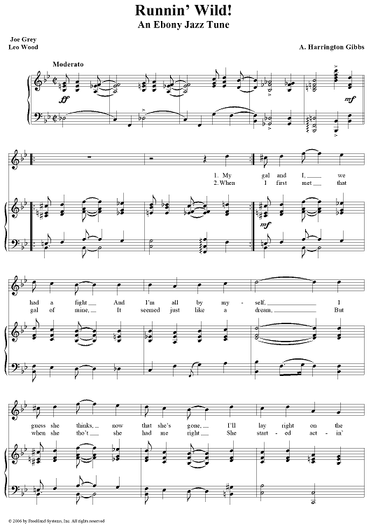 Digital Sheet Music for Runnin' Wild! by Leo Wood, A. Harrington Gibbs, Joe Grey scored for Piano/Vocal; id:320928
