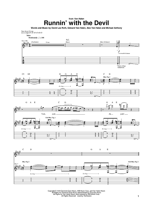 Digital Sheet Music for Runnin' With The Devil by Eddie Van Halen, David Lee Roth, Michael Anthony, Alex Van Halen, Van Halen scored for Guitar Tab; id:383385