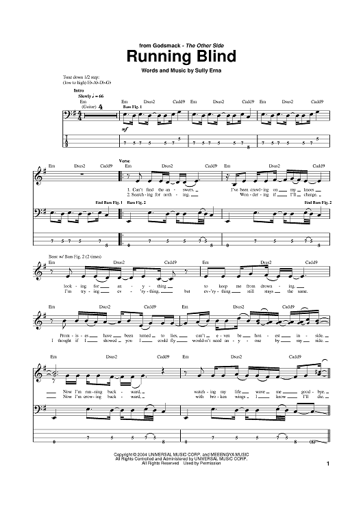 Digital Sheet Music for Running Blind by Godsmack scored for Bass Tab; id:380333