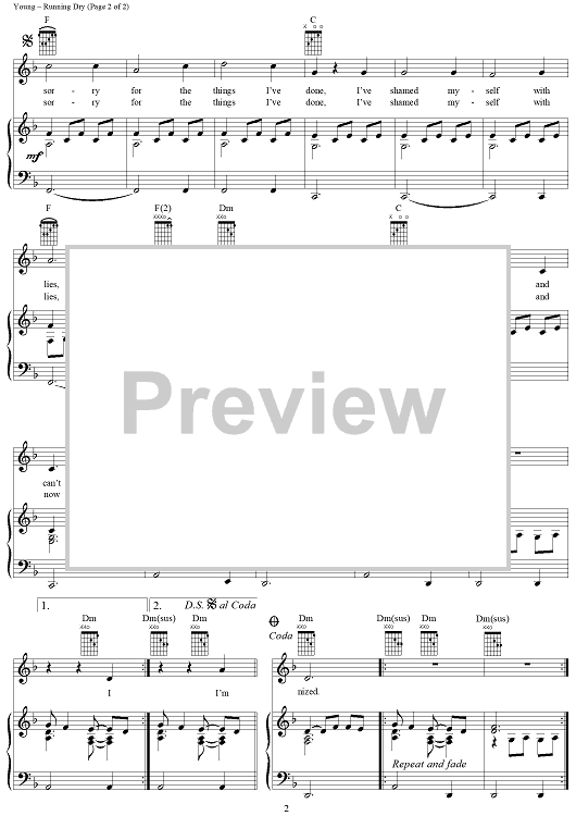 Digital Sheet Music for Running Dry by Neil Young scored for Piano/Vocal/Chords; id:262736