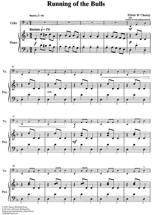 "Running of the Bulls" Sheet Music by Elliott W. Cheney