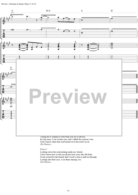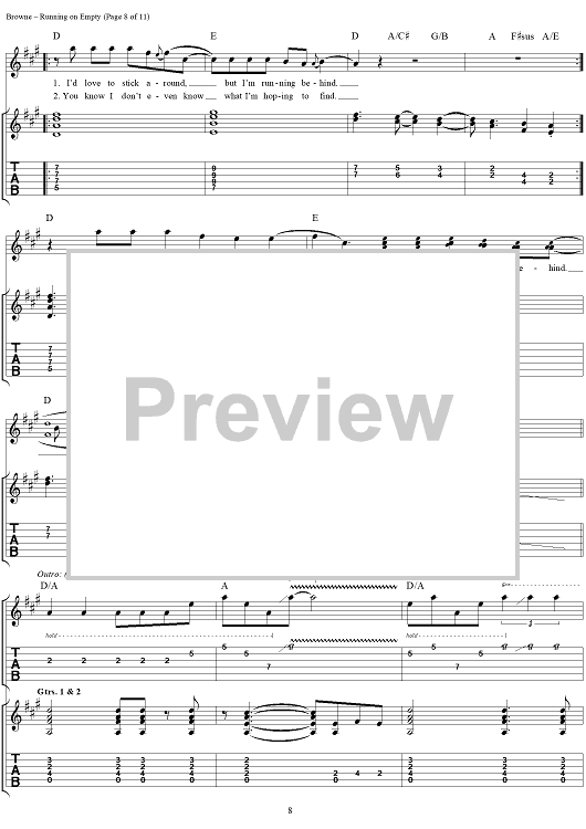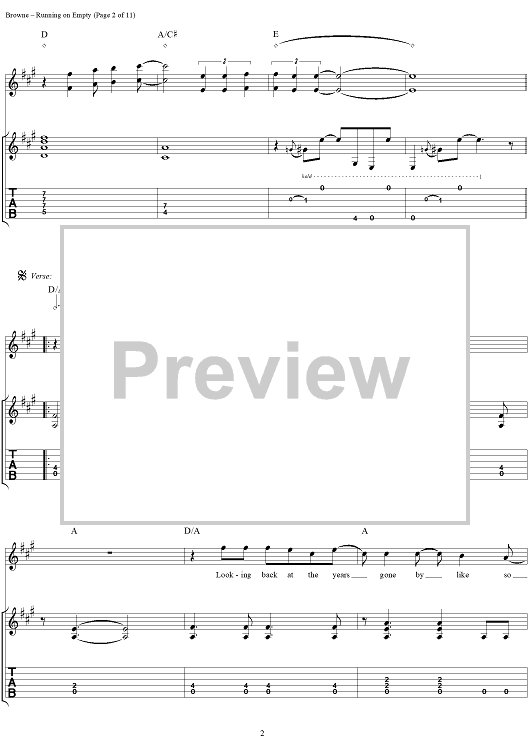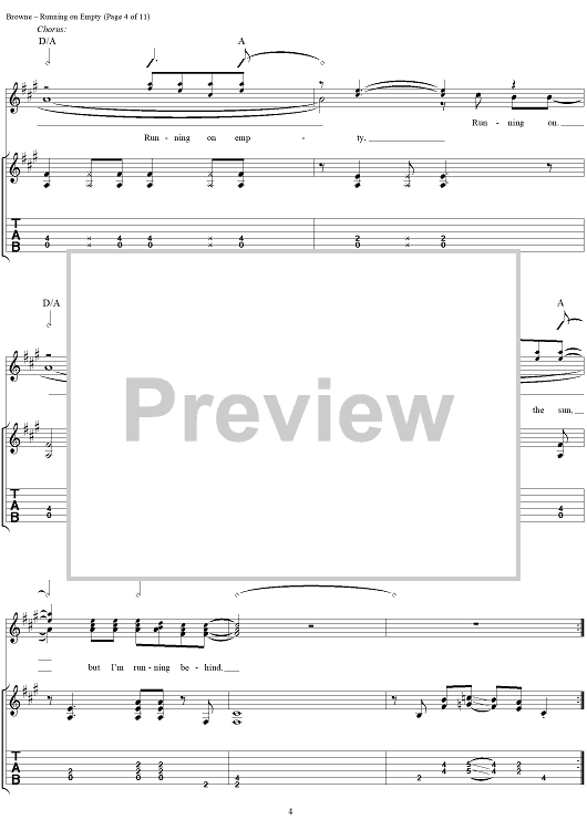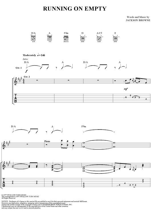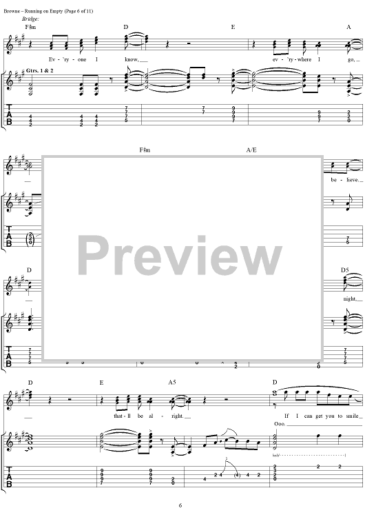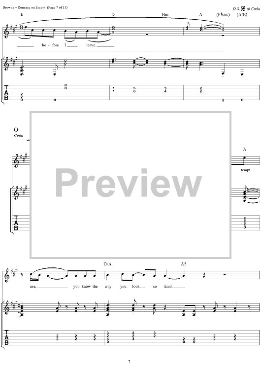 "Running On Empty" Sheet Music by Jackson Browne