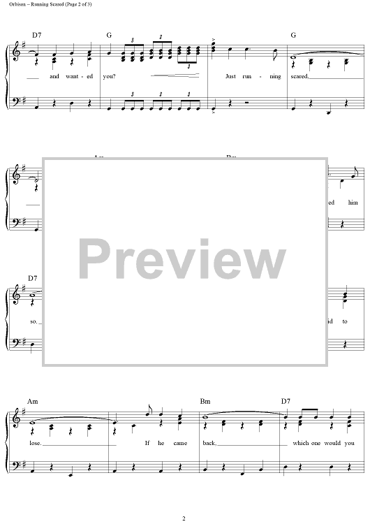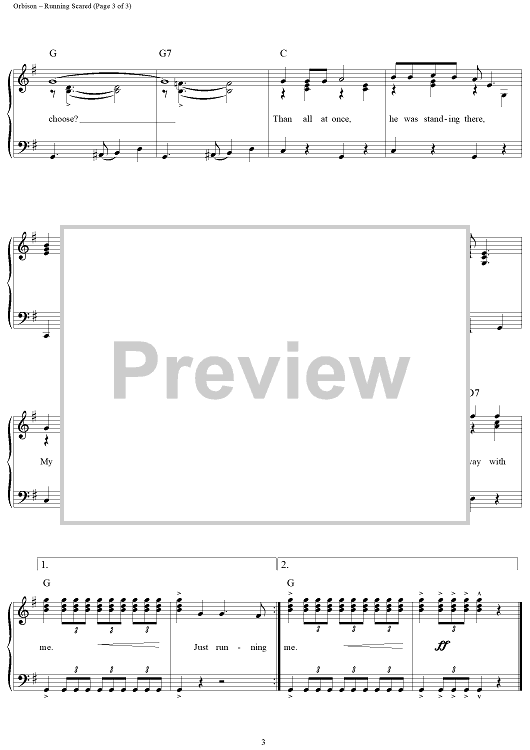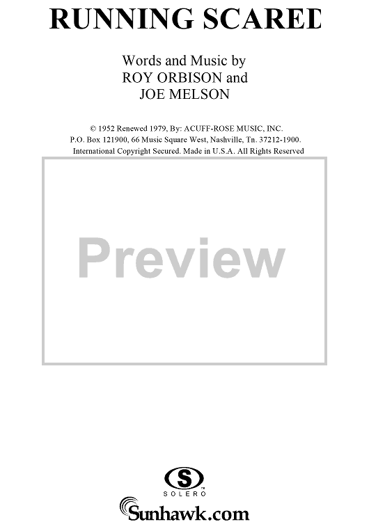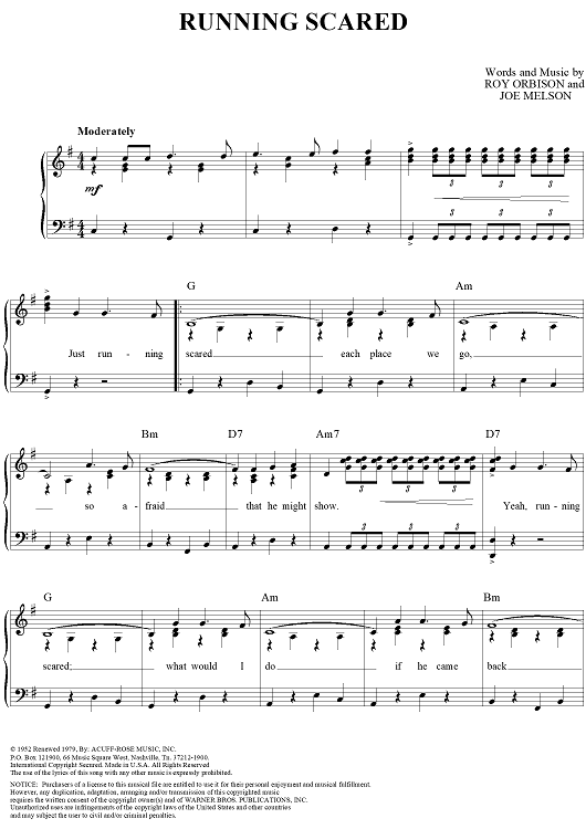 Digital Sheet Music for Running Scared by Roy Orbison, Joe Melson scored for Piano/Vocal/Chords; id:119845